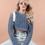 Fishnet Cotton Crop Pullover